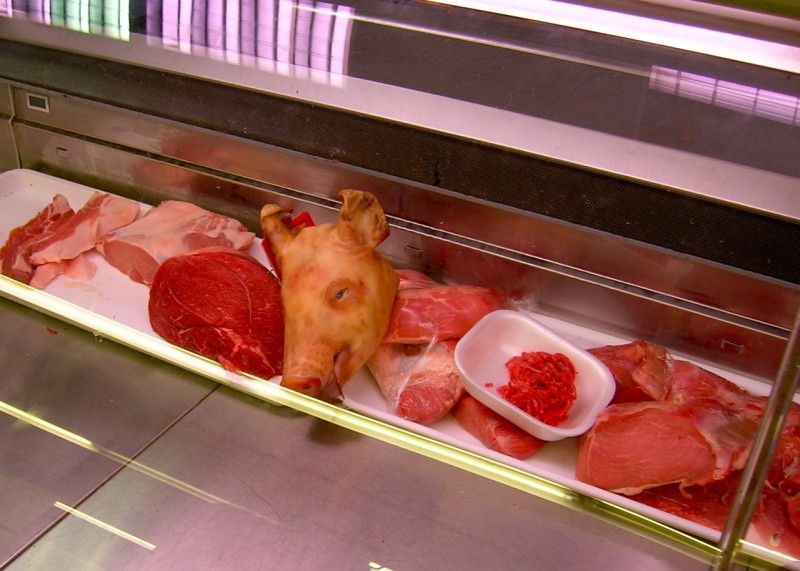And last but not least…Skip off to the grocery store to pick up some ground beef, pork chops…and pig’s head (on a positive note, at least nothing goes to waste!!!).