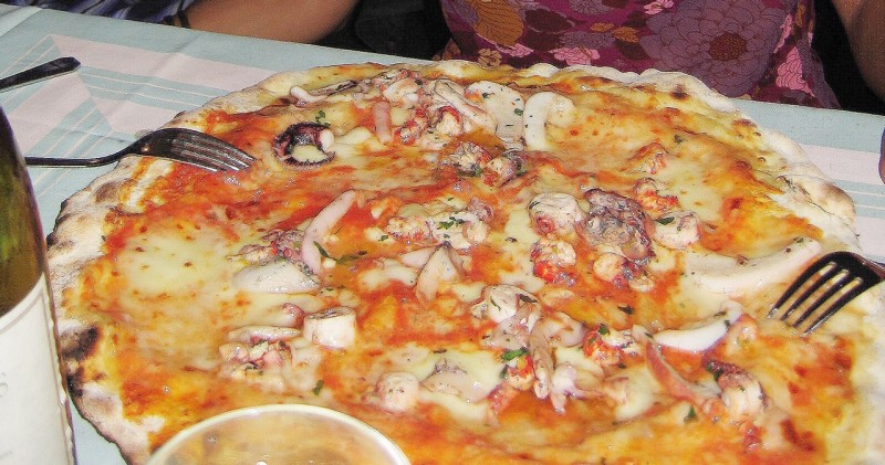 My all-time favourite: seafood pizza, usually in bianco or without tomato sauce.
