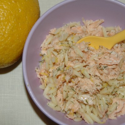 1 cup pasta shells or pasta of your choice (I find most mini-pastas too small for my son to eat as finger food so I used regular pasta shells and then cut them in half)
