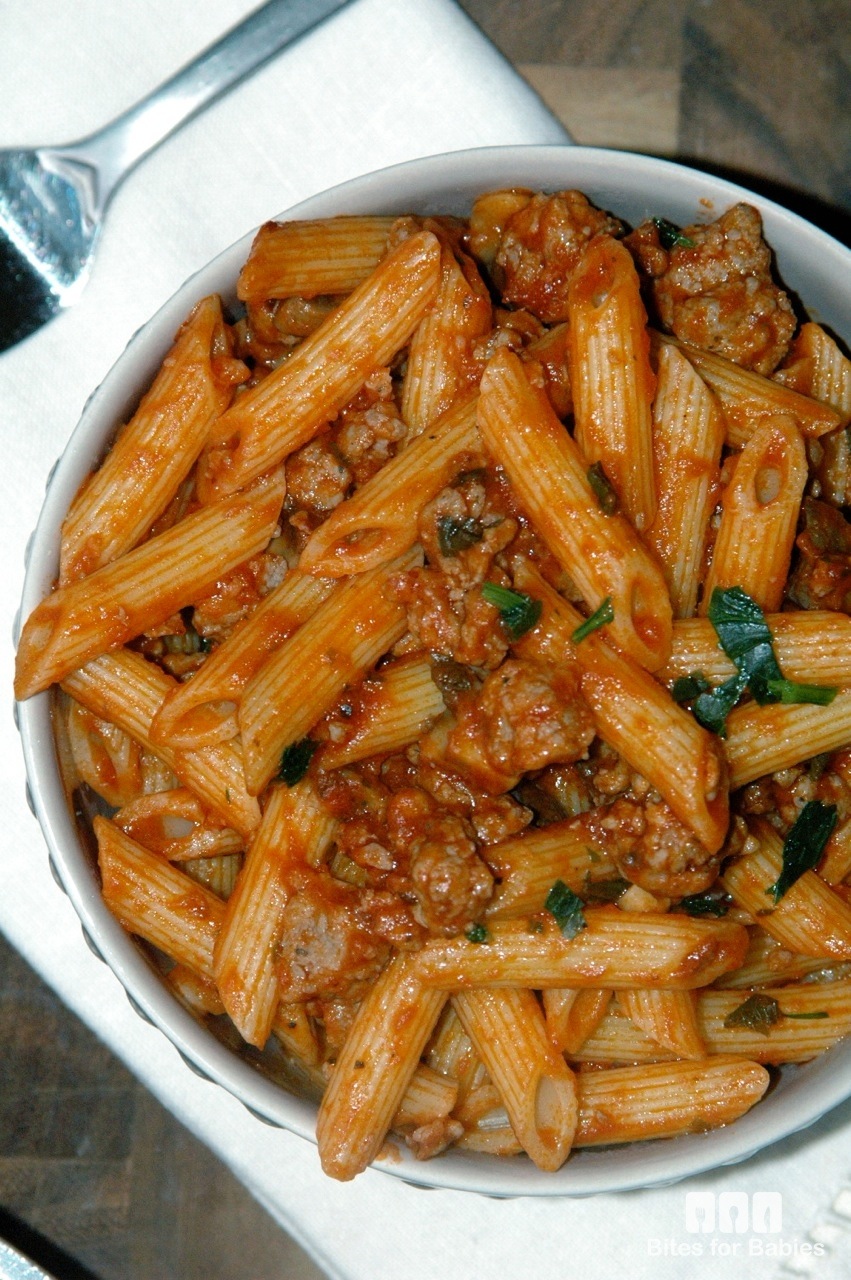 There are a ton of traditional pasta recipes in my repertoire-Bolognese Sauce, Sweet Basil Pesto, Creamy Carbonara Macaroni, and this delicious sausage and mushroom penne.