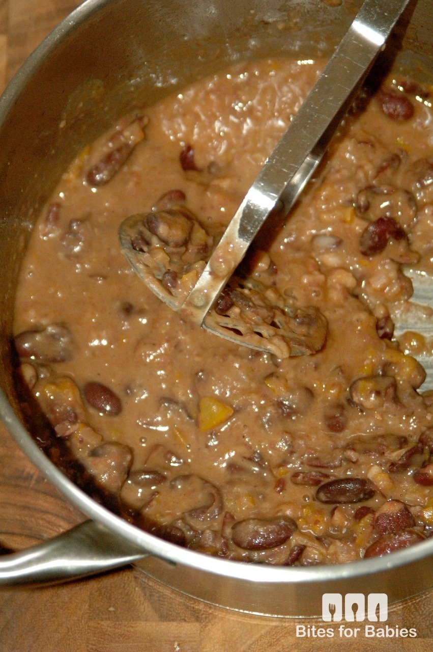Mash the beans directly in the pot with a potato masher. If you prefer “soupier” beans remove immediately from the heat.